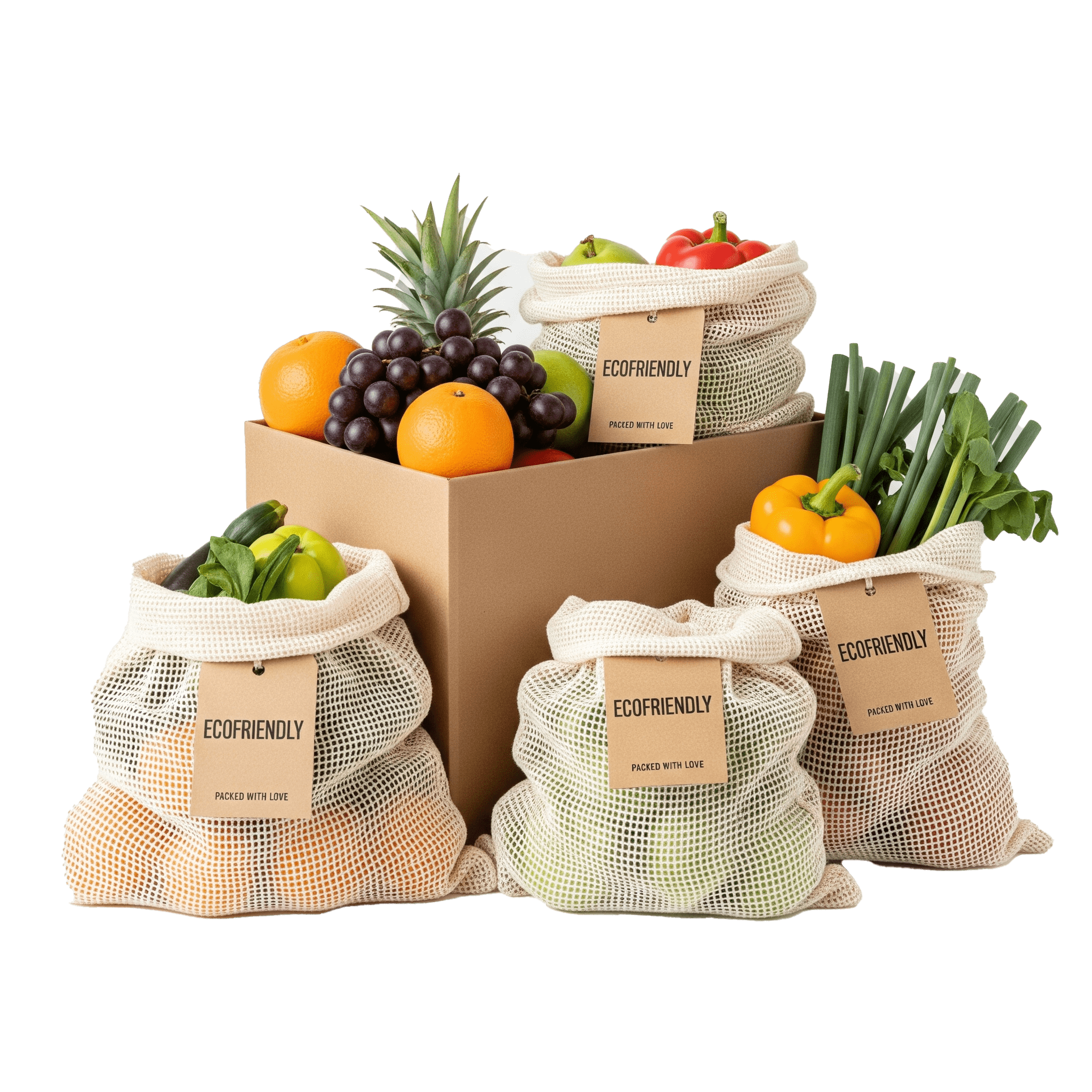 • Bolsas de Malla Reutilizables: Di adiós a las bolsas plásticas de un solo uso. Para productos a granel, utilizamos bolsas de malla duraderas y lavables. Son perfectas para tus compras futuras y te ayudarán a reducir significativamente tu consumo de plástico.